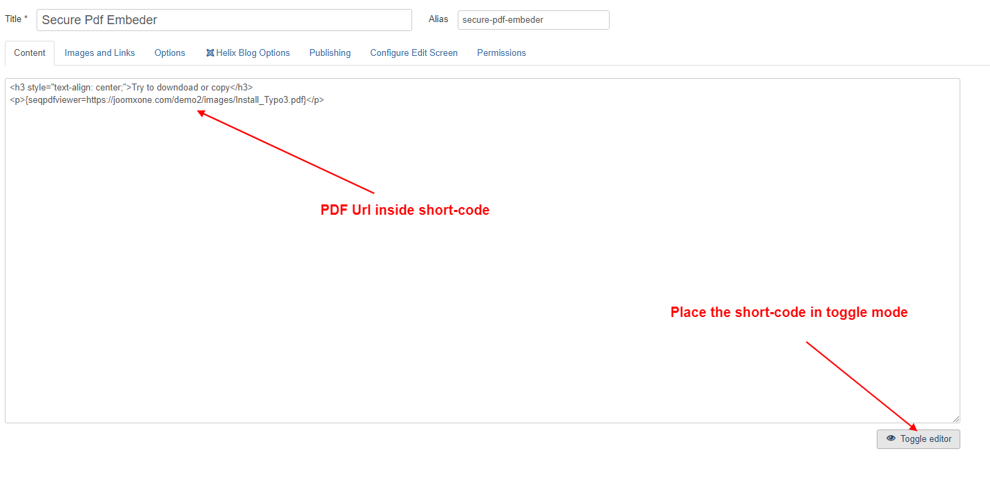 This is an amazing content Plugin works with a shortcode. you can place as many PDFs as you can to your Joomla Articles and K2 Items. It supports both Joomla native articles and K2 component items. Just install the plugin and enable it, then put the PDF URL with the shortcode to Joomla articles or k2 items whatever you choose(Shortcode example is given at plugin backend and FAQ section of this page). It's better if you put the shortcode in the toggle mode of the editor. Please check out the demo link given below.